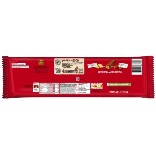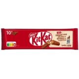 La barre chocolatée KITKAT est la barre idéale pour tous ceux qui aiment faire un bon break* ! Une gaufrette croustillante à la texture légère dorée au four et un délicieux chocolat au lait. Déballez votre KITKAT, détachez les deux barres puis coupez l’une en deux et dégustez votre break* ! La portion repère est de 4 barres. Existe en plusieurs formats. KITKAT est la première marque internationale…